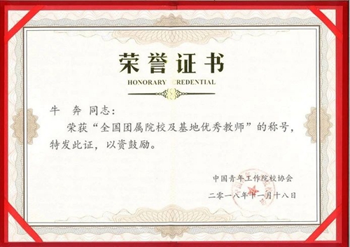 牛奔老师始终相信,站上讲台,就是生命在歌唱。他坚持立德树人,以“四有好老师”“四个引路人”和“四个相统一”为目标,不做只授知识的教书匠,要做塑造学生品格、品行、品位的“大先生”。在教学中,他坚持以学生为主体,注重师生互动、教学相长,培养学生自我学习的能力,提高其综合素质。从教以来,共承担20多门课程、4000多课时的教学任务。所有授课学生评教平均得分99.36、督导听课平均得分94,评价等级皆为A。他坚持学习,注重自我能力提升。近年来,先后考取了国家二级心理咨询师职业资格证书、国家社会工作师职业资格证书,积极探索教育教学、人才培养和课程思政的新思路新途径。
