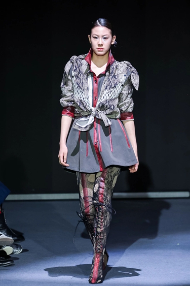 展演由48位毕业生共同参与,呈现121套原创成衣作品。整体分为“古韵今风”“当代情愫”“幻梦华章”“未来已来”四个单元,构建起从传统文化出发、经由现实语境,再走向科技未来的审美谱系。此次展演由时尚传播学院表演专业师生编导与演绎,通过专业化T台与沉浸式舞美,使每套服装的设计理念与情感内核得以充分呈现。