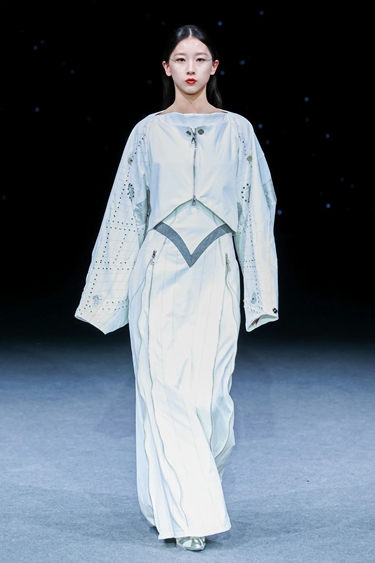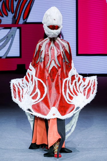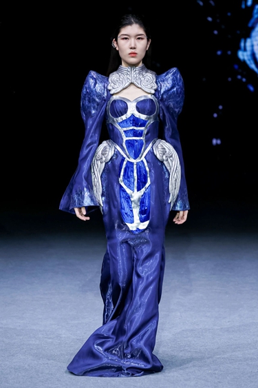 “Ancient Echo历史回响”系列以东方文化为叙事基点,设计师将中国传统图案与现代结构语汇深度融合,通过数字时装手段解构与重构传统文化符号,塑造出具有先锋精神的东方视觉风格,传递文化自信与美学新意。