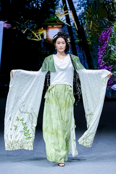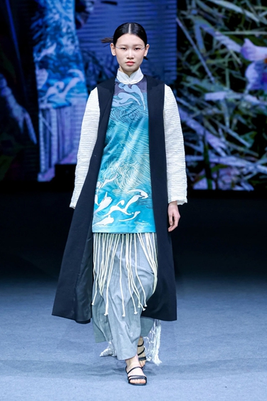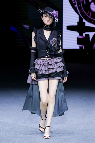 数字时装设计专业方向2021级同学聂雨婷对记者说,她的设计作品《Matata Room》通过服装设计承载与母亲共度的成长记忆,既是对童年梦想的致敬,亦是通过服装媒介传递人文温度的实践。记者对参与此次秀的数字时装设计专业方向2021级同学鲁秋雨进行了采访。她的设计作品《异绣》以《聊斋志异》中的角色为灵感,通过AI工具模拟刺绣工艺,既简化设计流程又强化工艺质感。
