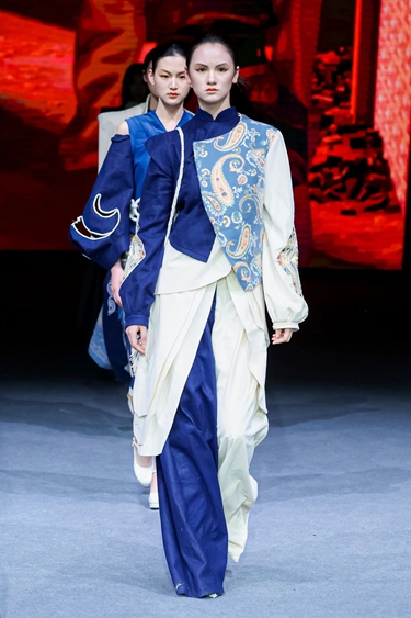 展演汇聚24位毕业生虚拟时装视频作品与33套数字实物成衣,涵盖数字建模、三维渲染、AI视觉创意与虚拟营销全链条,集中呈现在教学改革与产教融合方面的最新成果。展演分为“Ancient Echo历史回响”“Digital Pulse数字加载”“Soul Achieve灵魂存档”三个核心系列,分别聚焦文化传承、科技应用与情感表达主题。本场秀演由时尚传播学院表演专业学生进行演绎并参与编导。