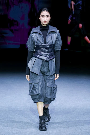 “Digital Pulse数字加载”系列回应当下科技对时尚产业的深度影响。作品涵盖AI图像生成、虚拟版型开发、3D实时渲染等技术模块,不仅体现出技术熟练度,更折射出青年设计师对“未来衣橱”概念的积极探索。