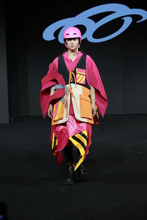 本场活动在精彩的展演后,举行安踏奖学金颁奖典礼,该奖学金旨在奖励学业与创意并重的优秀毕业生,校领导、企业代表等为获奖学生逐一颁发证书。成衣赛道金奖获得者是曾文琳,作品名称《须臾之间》;创意赛道金奖获得者是代巧,作品名称《宇宙独行探险指南》。