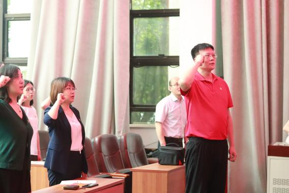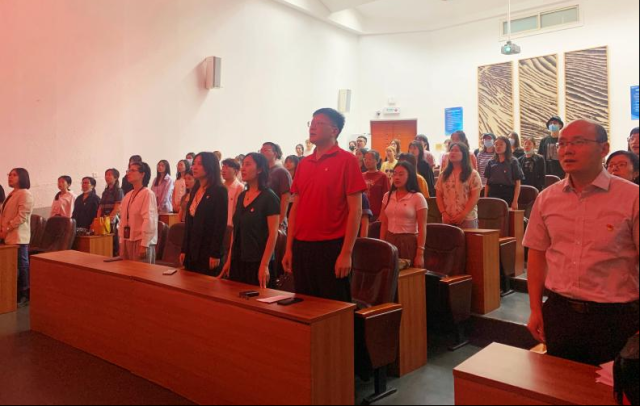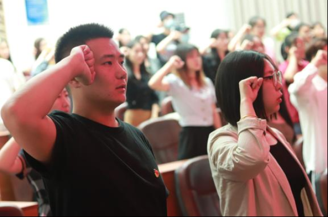 6月16日中午,服饰艺术与工程学院党委新党员入党宣誓仪式在5号楼科技楼报告厅举行。学院各党支部书记及全体预备党员参加仪式。