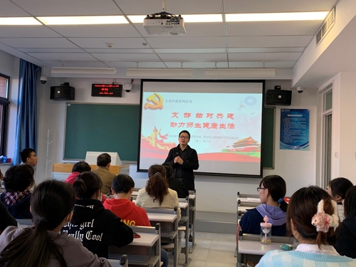 10月11日中午,后期基建党总支第二党支部、第四党支部与商学院工商管理专业学生党支部在芍药居校区教学楼310教室联合举办“支部结对共建,助力师生健康生活”主题党日活动,参加现场活动的有商学院党委副书记李飞跃、后勤基建党总支第二党支部和第四党支部所有教工党员以及商学院工商管理专业党支部所有学生党员。