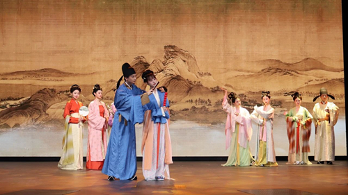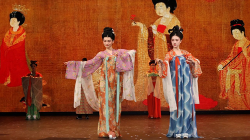 志愿者展示复原的唐代服饰
