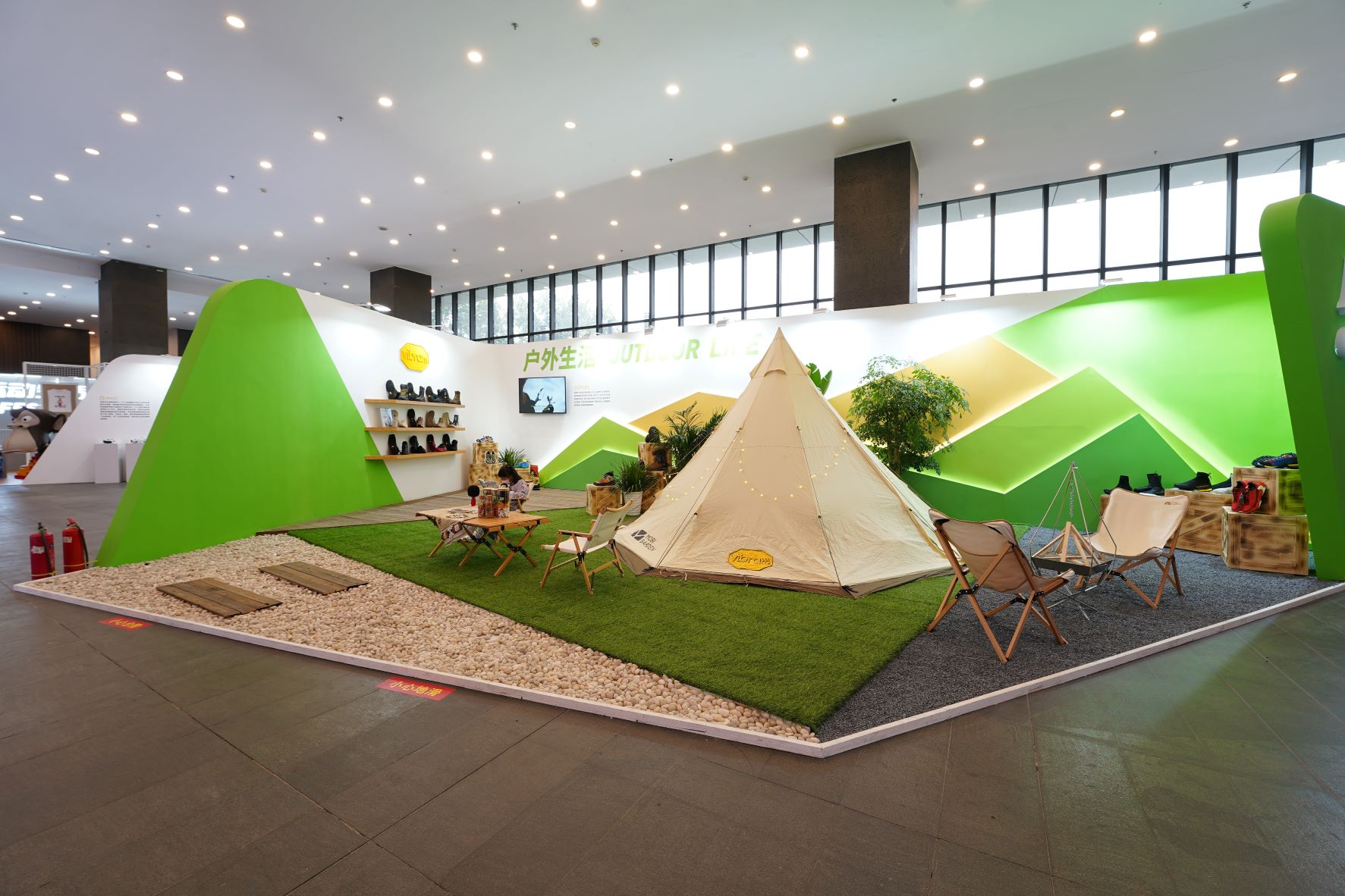 近年来国人对户外运动参与热情持续升温,意大利Vibram集团中国总公司为展览精细打造了沉浸式多地形户外生活体验区。来宾可以体验到鹅卵石、碎石、草地等多种典型的户外情境,感受露营氛围,更能全面了解品牌的丰富产品、先进科技和环保理念。
