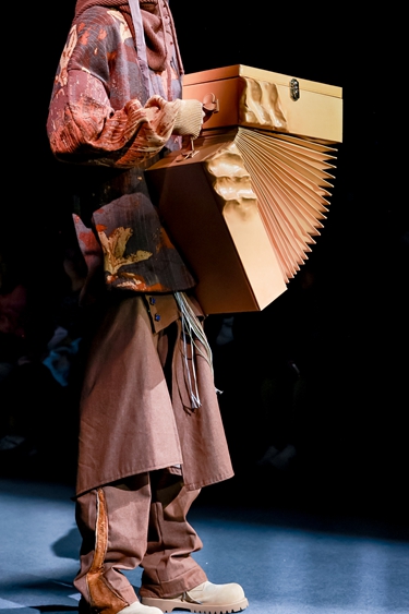 青年设计师深耕传统、突破革新,以前瞻性的视野探寻未来趋势,在皮革、织物与新型材料的应用上大胆尝试,既体现出对传统工艺的现代转译,也积极探索数智技术赋能下的革新表达。作品诠释了“探赜索隐,钩深致远”的设计精神,表达出“备物致用,立功成器,以为天下利”的社会担当。