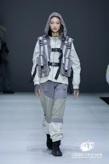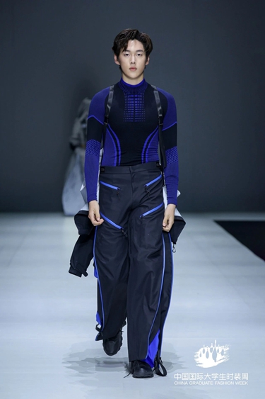 展演现场,合创舞台与影像灯光交相呼应,每组作品在灯光下迸发独特魅力,既凸显设计细节,又营造出强烈的艺术氛围。观众通过服装,感受到设计师对人民生活、山河大地与时代精神的深情致敬,也见证青年一代在国家文化自信和工业创新双轮驱动下的创造力与责任感。
