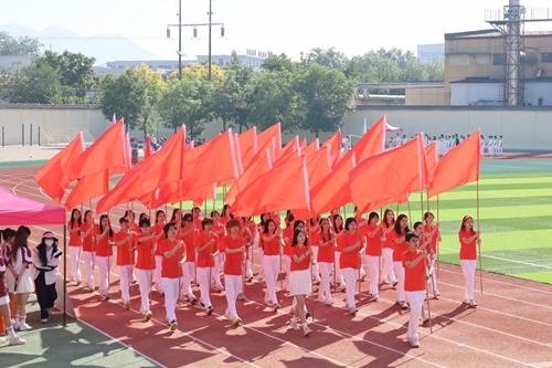 绿意盎然、繁花似锦,运动会在庄严的国歌声中拉开序幕。升国旗,奏国歌,五星红旗冉冉升起,随风飘扬。