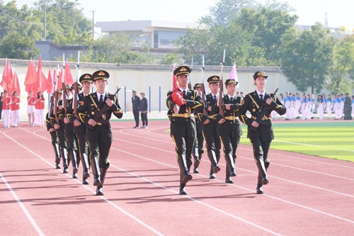 入场式后,健美操队闪亮登场。队员们迈着矫健有力的步伐,伴着节奏明快的音乐,在操场上翩翩起舞。灵动的身影、整齐划一的动作,如行云流水,瞬间点燃全场。
