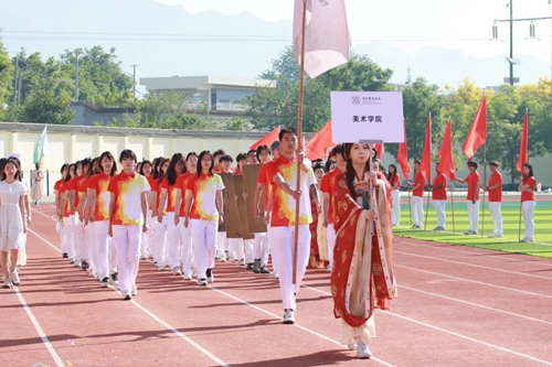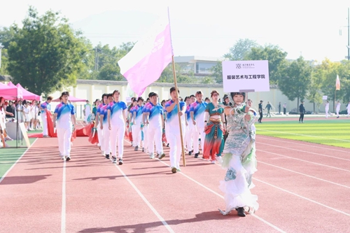 在激昂的乐曲中,护旗方队、裁判员方阵及各二级学院运动员方队依次入场。主席台与看台师生全体起立,报以热烈掌声。队伍整齐划一,步伐铿锵有力,口号响亮震天,精心设计的服饰和队形,充分展现了北服学子与美同行、拼搏奋进的精神风貌,彰显青春活力与团结力量。