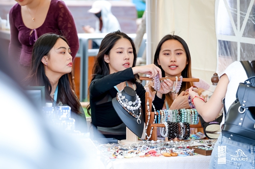 市集展售作品超千件,作品涉及服装服饰、箱包皮具、布艺玩偶、瓷器陶器、文玩手办、绘画摆件等众多品类,琳琅满目的原创作品吸引了众多消费者。