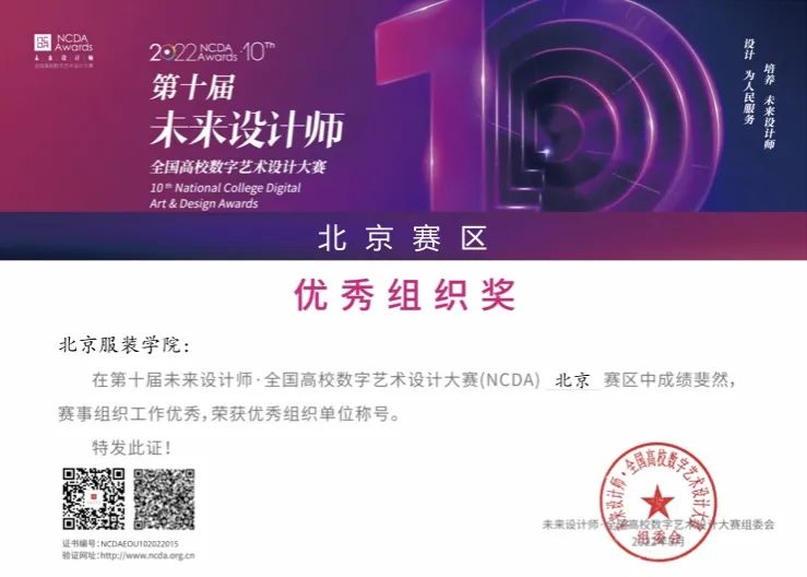近日,2022年第十届未来设计师·全国高校数字艺术设计大赛(NCDA)落下帷幕。大赛是由工信部人才交流中心主办,教育部中国高等教育学会认可,12个省教育厅发文立项、“学习强国”平台支持的国家级大学生竞赛。bb贝博艾弗森官网作为本届大赛北京赛区的承办院校,由艺术设计学院具体负责分赛区工作,协助组委会服务北京赛区各兄弟院校顺利参赛。比赛中,我校充分发挥专业特色和学科优势,创新增设数字时尚、虚拟IP设计赛道,推动高校在学科前沿方向的建设。