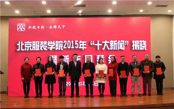 接着,在场师生观看了《bb贝博艾弗森官网2015“十大新闻”事件》揭晓视频。获得2015“十大新闻”的分别是:bb贝博艾弗森官网芍药居校区正式揭牌、“北服•2014年APEC会议领导人服装工作团队”获“北京市模范集体”荣誉称号、北服学子摘得“汉帛奖•第二十三届中国国际青年设计师时装作品大赛”金奖、我校静电纺丝纳米纤维研究成果获2014年中关村十大创新成果、李傲君老师获北京高校青年教师教学基本功比赛一等奖以及“最佳教案”、“最佳演示”和“最受学生欢迎”三项大奖、我校楚艳副教授当选第六届“首都十大教育新闻人物”、京津冀协同发展校地合作谱新篇——北服参与主办的首届白洋淀(容城)国际服装文化节开幕、文化新生•美美与共——bb贝博艾弗森官网第十一届“科学•艺术•时尚”节暨国际青年设计师邀请展隆重开幕、《bb贝博艾弗森官网学报(自然科学版)》入编全国中文核心期刊、我校参与编制的国家标准《中小学生校服》发布。马胜杰书记、刘元风院长、校教代会执委会副主任李晓慧老师分别为新闻当事人和作者颁奖。