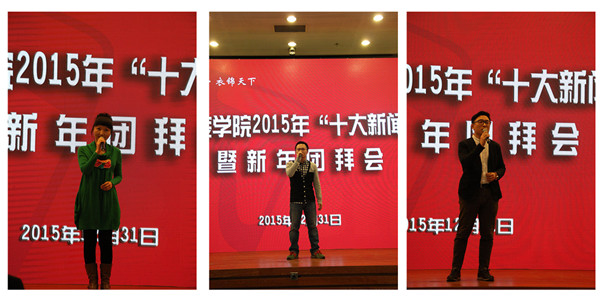 【新闻中心讯】12月31日下午,我校2015年“十大新闻”揭晓暨新年团拜会在艺术楼二层报告厅隆重召开。党委书记马胜杰、院长刘元风、副书记倪赛力、钱卫、党委常委、副院长廖青、仲丛生、詹炳宏出席,中层干部,离退休教师代表,在职教师代表,学生代表等近三百人参加。会议由党委宣传部部长、新闻中心主任张红玲主持。