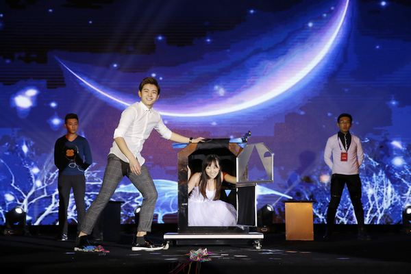 第四章 “偶像来了”更让同学们感受到艺术的魅力。大四学生邱家栋以一段功力深厚的太极拳展示了中华武术与传统文化的博大精深;啦啦操社的姑娘们舞出活力,跃动青春,将现场的气氛点燃;来自中国戏曲学院学生带来《川剧变脸》,用精彩的演绎让观众们沉浸在瑰丽的传统文化中;素有北服舞王之称的陆洋校友,以凌厉的步伐和舞姿再次征服全场观众;篇章最后,央视常驻魔术表演嘉宾杜艺龙为大家带来了难得一见的大型魔术,将现场气氛推至高潮。