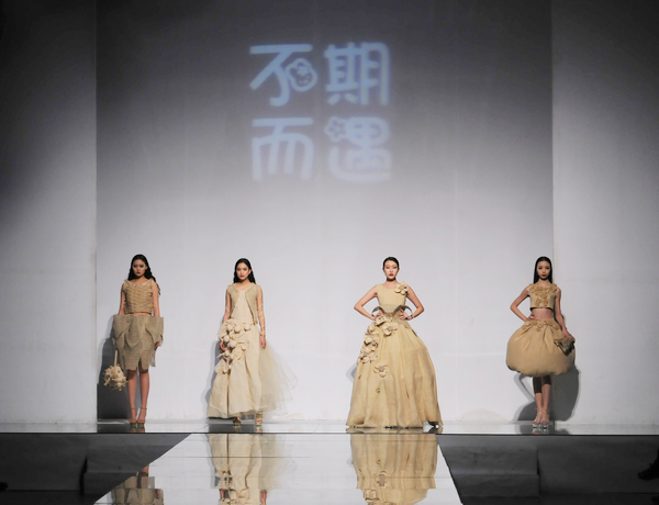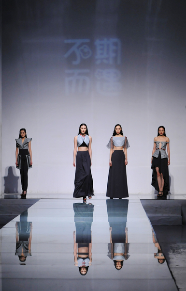 在设计师们谢幕以后,主持人邀请校领导走上T台,为优秀毕业设计作品颁奖并合影留念。本次奖项经学校老师、企业设计师、版型师联合评定,共评选出一等奖一名、二等奖三名、三等奖六名,以及最佳创意奖、最具市场潜力奖、最佳工艺设计奖三个单项奖,并首次启用微信公众平台投票评选出最具人气设计师三名。伴随着“不期而遇”毕业秀的谢幕,同学们的北服学习生涯结束了,而未来的设计师之路已经铺就。北服将带着祝福、带着期许,为他们的未来加油、喝彩!
