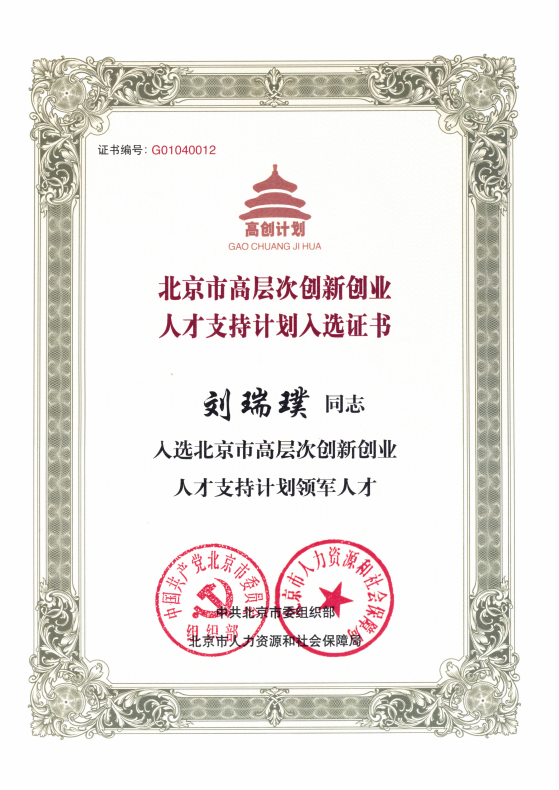 - 刘瑞璞教授荣获北京市2014年“高创计划”教学名师奖