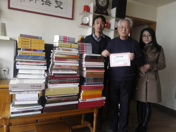 黄老师说,这些书籍是自己多年来学习、收藏及创作的积累,捐赠给学校图书馆,希望可以为学校在艺术教育方面贡献自己的力量,并祝愿学校发展得越来越好。最后,图书馆焦海霞向黄绍勋老师颁发了捐赠证书,并合影留念。