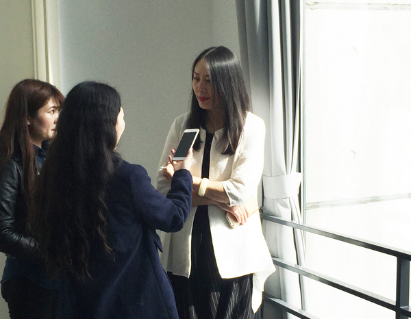 服装表演专业负责人李玮琦老师(右)接受采访