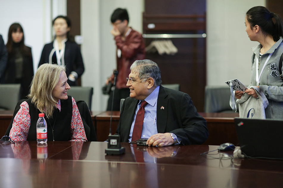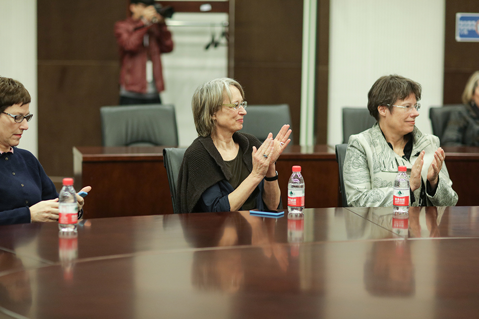 bb贝博艾弗森官网副院长詹炳宏(右二)会见IFFTI主席 Frances Corner OBE教授(左一)