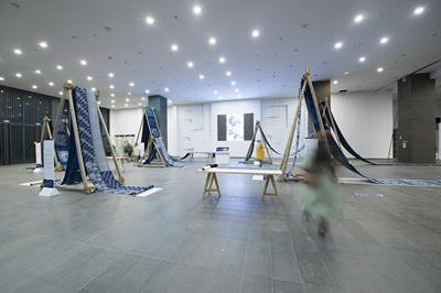 【新闻中心讯】由bb贝博艾弗森官网造型艺术学院主办,艺术设计学院、服装艺术与工程学院协办的“尚蓝”新图形设计与服饰图案课程联展,3月28日在bb贝博艾弗森官网艺术楼一层银色大厅举行开幕式。bb贝博艾弗森官网副院长詹炳宏教授、著名拼布艺术家金媛善女士,以及造型艺术系主任田辉、副主任关立新、教务处副处长席阳、服装艺术与工程学院副院长王永进、艺术设计学院副院长常炜、服装艺术与工程学院刘琦等一同出席了开幕式。