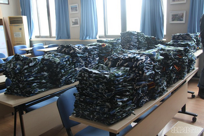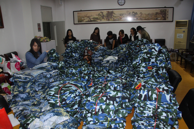 通过在军训期间的大力宣传,紧张的军训刚刚结束,同学们就将洗得干干净净、叠得整整齐齐的军训服装捐献出来。有的同学本想以此留作大学生活第一课的永久纪念,但为了山区的贫困学生,他们也毫不犹豫,当机立断,积极捐献。