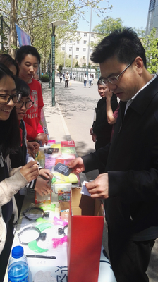 校党委书记马胜杰在心理文化节宣传现场详细询问相关工作