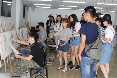 第三期参观的我校毕业生魏伟校友所创建的小泽画室,主要参观者为造型艺术系学生。校友魏伟带领同学们参观了画室的环境和条件,与同学们座谈了他的创业心酸史,并告诫同学们有梦想就要坚持,不怕付出努力和辛苦,不要急于求回报。老师还讲到,他最大的收益就是他帮助的那些同学很开心,他自己也很开心,这也是他自信的来源。他说每个人都有缺点,但要正视自己的缺点,并且去发现自己的优点,从而散发光芒。