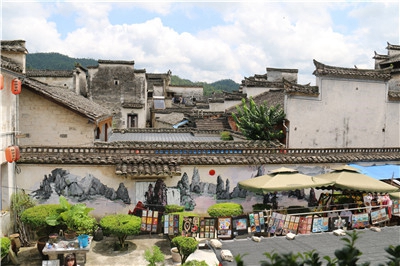 在整个实践活动期间,实践团成员们还参观了中国状元博物馆、休宁一中、黟县中学、陶渊明故居“守拙园”、齐云山等,在深刻感受徽州地区重教兴文的优秀传统文化同时,成员们也被当地壮丽优美的景色所震撼,朴素淡雅的徽派传统建筑、水秀山明的宜人景色激发了绘画组同学们的创作灵感。同学们一笔一画描绘了长达十米的文化墙,用北服学子擅长的方式再现了徽州山水的迷人之处,也展现了北服学子高超的艺术水平。