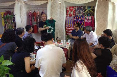 国之桦民族服饰公司听设计师讲艾德莱斯绸的创新设计 索永布民族服饰公司的当代蒙古族创新服饰