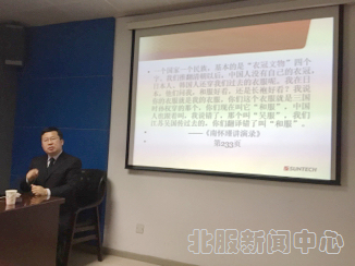 1020日上午,首届国家教委中英友好奖学金获得者、外交学院英语系教授武波(研究领域为国学与中国文化英译以及跨文化传播)来北服做了有关“中华传统文化走出去”的学术讲座。讲座分为三部分内容:一是中国人的世界观;二是中国人的方法论;三是中国文化走出去的正确途径。讲座信息丰富,深入浅出,旁征博引,结合具体实例,谈古论今。在中西文化的对比中,从哲学的高度为师生正确理解中国梦、准确理解中华传统服饰文化元素,以及思索如何实现中华传统元素的传承和发展理清了思路,指明了方向。使学生们对翻译也有了更深的理解,增强了专业学习的信心。讲座持续了3个半小时,在休息间隙,慕名而来的听众不断结合自身的困惑向武教授提问