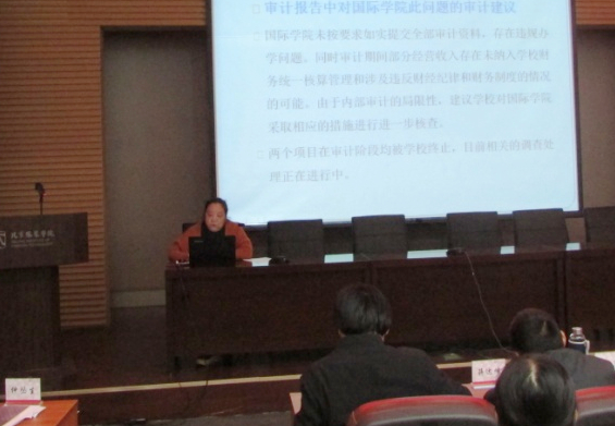 审计处处长刘晓宁对本次中层干部届中审计情况进行了综合反馈。同时按照《北京市教委关于进一步加强教育系统内部审计结果利用工作的意见》和校长办公会精神,就下一步审计整改工作进行了布置。要求各部门按照审计建议书要求,结合部门实际情况,制定整改方案,提出具体审计整改措施,并在审计建议书下达之日起一个月内完成整改工作,将审计整改情况书面报审计处。