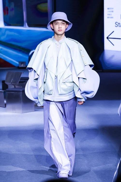 4月30日,bb贝博艾弗森官网男装专业方向2025届毕业设计展演《下一站》,16位毕业生带着62套原创男装作品,以服装为媒介,书写对时代、文化与自我的独特思考。