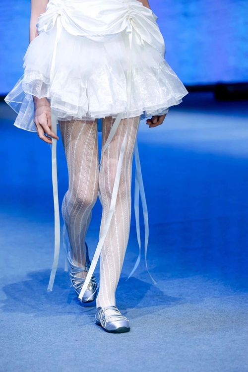 125套创意之作踏着“旅途”节拍惊艳亮相。敦煌色彩在针织间跃动,新疆纹样碰撞都市美学;苗银图腾、鄂尔多斯嫁衣借提花工艺焕发新生。科技感十足的火星主题与充满人文关怀的“触感婚纱”同台,在T台上演跨界对话。每件作品都是设计师精心打造的创意盲盒,带来兼具潮流与专业的视觉盛宴。
