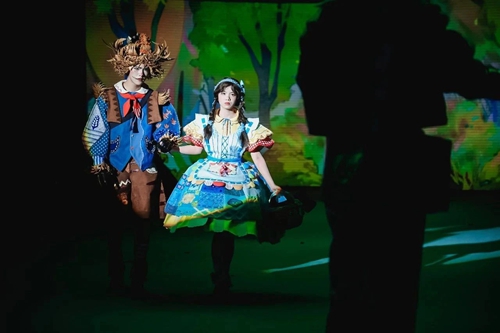 以“解构经典,重构叙事”为核心理念,26位毕业生用114套服装作品,重新诠释中西方经典剧目。从动画电影《雄狮少年》中跃动的醒狮元素,到古希腊神话《美狄亚》里柱式隐喻的性格造型;从风筝意象勾勒的《山中传奇》,到娘惹文化融合的《Pandora’s Dream》,每一套戏服都打破传统框架,在结构、面料与造型上大胆创新,既承载深厚的文化底蕴,又彰显先锋创意。