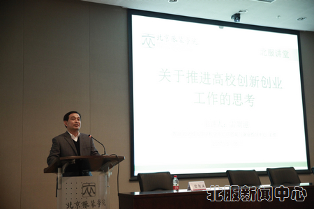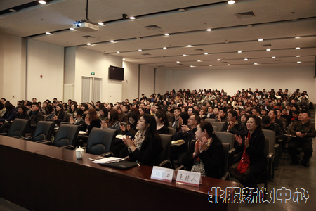 【新闻中心讯】3月16日下午1点半,我校2017年首场“北服讲堂”在7号楼(艺术楼)二层报告厅举行。为了让师生对我国当前大学生创新创业政策、现状等情况有一个比较全面的了解,更好地实施全员育人、全过程育人,学校特别邀请到教育部全国高等学校学生信息咨询与就业指导中心雷朝滋主任做客“北服讲堂”,为师生带来《关于推进高校创新创业工作的思考》。讲堂由党委副书记倪赛力主持,校党委理论中心组成员、全体中层干部、各学院师生代表三百余人到场聆听。