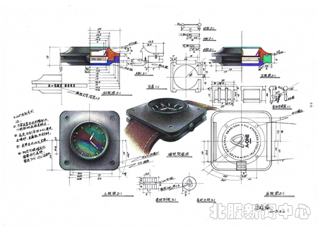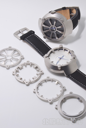【南极科考专用表设计理念】这个作品是专门为中国南极科考队赴南极进行科考而专门设计的科考专用表。表盘的设计源于南极大陆的陆地造型,融入了科技概念和极地元素,准确地按卫星图片等高线的方式将表盘以3D立体的形式展现出来。冰山使用银冲压成型,不仅表现出了南极大陆层层冰川,而且中间夹层的蓝色透明玻璃也将海洋的效果表现得淋漓尽致,营造出极地神秘而令人向往的科幻世界,视觉上给人以全新的感受。由于科考特殊的工作环境,将整表进行了分体式设计,分为内表和外表套两部分,内外表尺寸分别为Φ50mm和Φ57mm。科考员可以将表佩戴于外衣的大臂处,不仅避免了超低温环境下佩戴于腕处造成的皮肤与金属接触的冻伤,而且改变了一般意义上的读表方式,更利于考察过程中观看。外表壳与内表结合处的旋扣设计更好地防止了冰碴等尖锐物体对表面的破坏。内外表采用表带互系的连接方式,便于拆装,使内表也适合日常佩戴,使用范围和实用性都大大加强了。