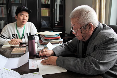 近日,党委宣传部学生记者在离退休工作处办公室见到了郭玉周老师。83岁的郭老师精神抖擞,谈笑风生。郭老师是我校第一批教师,退休后还组织成立了霓裳合唱团。郭老师在校时间60余年,亲眼见证了北服成长的点点滴滴。