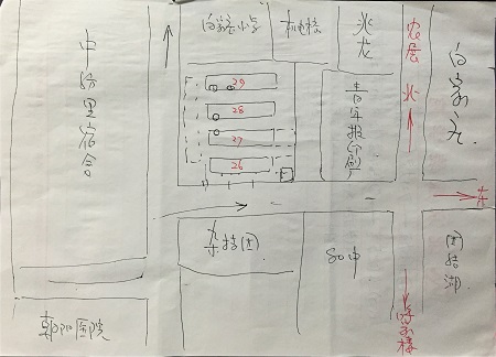 附:郭老师亲手绘制的中纺里及定福庄校区地图