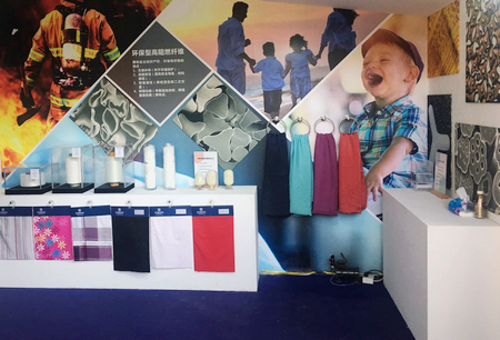 “智能材料”展区展示针对空气污染防护的过滤纤维及自主研发的空气过滤装置、日常防护用口罩,新型电致变色窗,柔性变色服装和纺织品;“功能纤维和绿色纤维”展区包括拥有自主知识产权的环保型高阻燃纤维,静电纺纳米纤维膜、面料、防水透湿服装及性能展示,废旧纺织品循环利用技术和产品展示;“染整工程”展区中,数码印花无需制版,设计样稿可在计算机上任意修改。现场可转印图案,即时体验和互动;“智能生活”展区展品为功能机器人、炫彩视觉、可穿戴功能服装、创意生活家居作品等;“虚拟服装”展区将体感交互技术应用于试衣系统,使人感受到计算机交互技术发展带来的便利。
