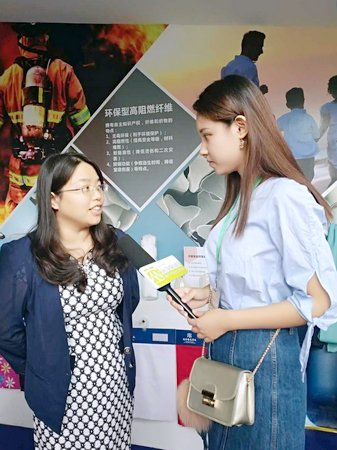 基础教学部姜延老师说,本次办展目的在于体现本校在自然科学领域所取得的成果,功能纤维和绿色纤维展区中,废旧纺织品循环利用技术和产品从物尽其用和垃圾减量角度上来说意义深远。