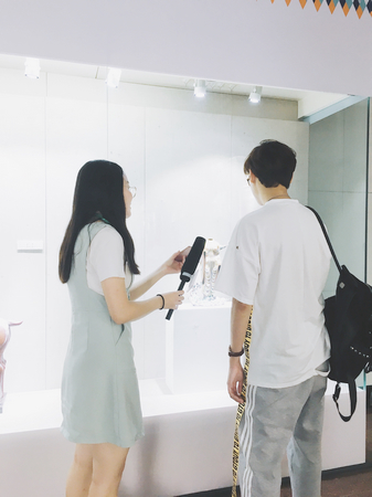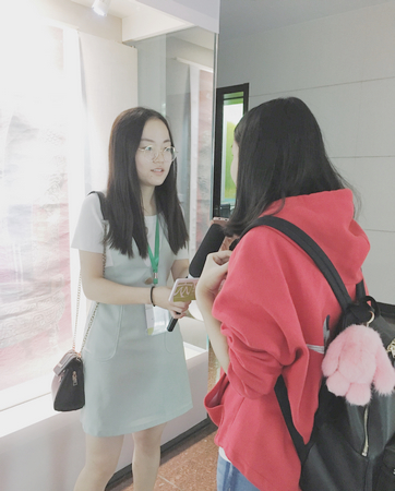 在参观的人群中,马铭雪同学参观后对小记者说,这次展很有文化和艺术气息,让参展的人更多地了解丝绸之路上的文化和别样的风情。刘祉瑶同学表示这些作品让她联想到以前丝绸之路的风光,切实感受到国家的经济能力在发展壮大。继续教育学院陈昶同学看完展后说,古代文化被现在人拿出来重新审视并在此基础上进行变化与创新,就会产生一种不一样的感觉。王延菲女士带着女儿前来参观展览,她说自己本身对丝绸之路这段文化历史比较感兴趣,所以也希望让孩子接触并了解这些知识。