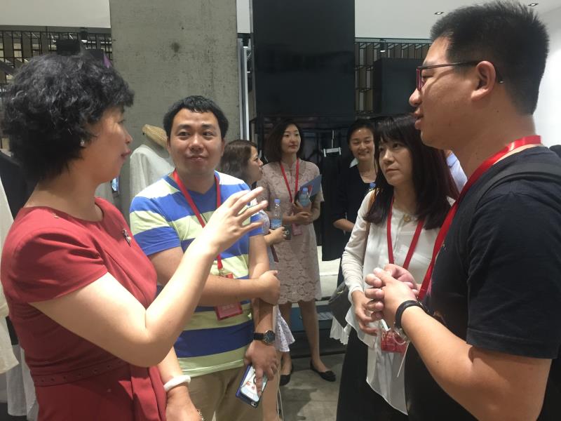 北京日报、北京晚报、中国纺织杂志、服装时报记者与我校党委副书记艾丽(左)交流