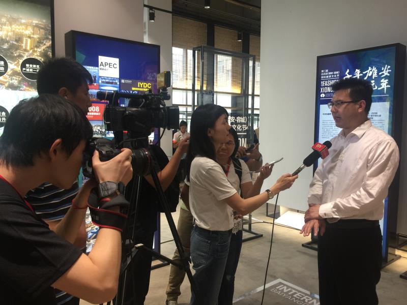 时尚雄安盛典颁奖礼前,北京电视台记者对王占永县长进行了采访。他说,希望发挥北服的优势,通过举办服装文化节开启容城时尚文化城市建设的新纪元,使得时尚基因更深入地植入雄安新区,从而促进纺织服装产业的转型升级,使更多的人关注雄安时尚产业的发展。