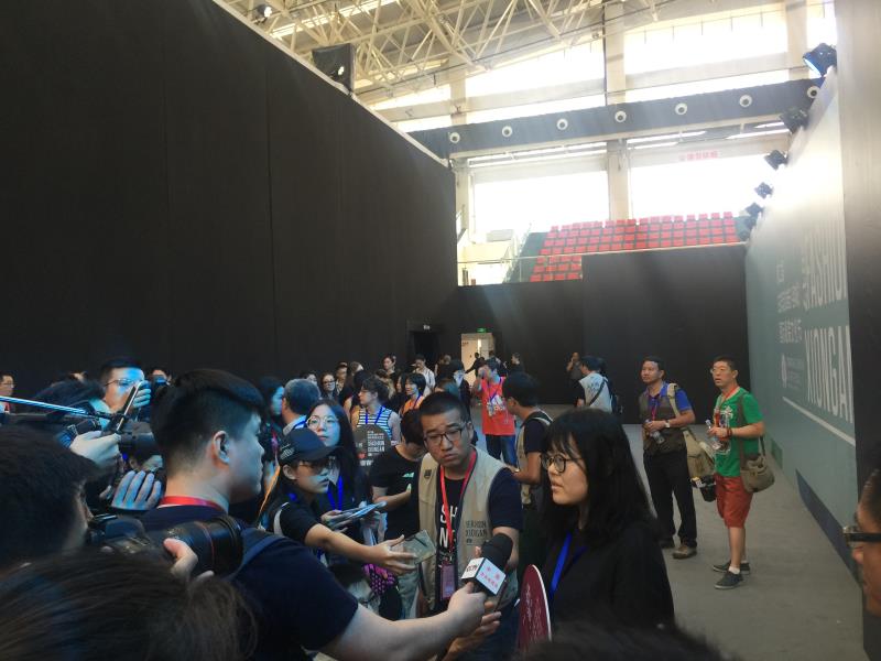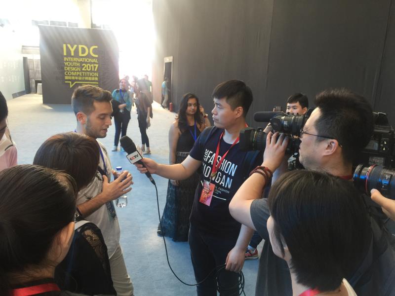 中央电视台记者现场对获奖设计师和中外观众进行采访