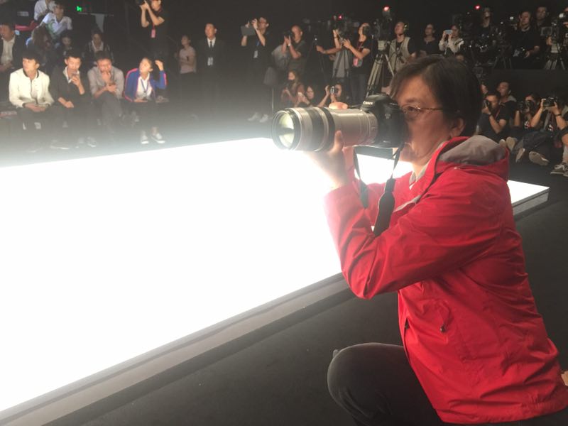 中央电视台记者(右)拍摄时尚·科技·艺术展区
