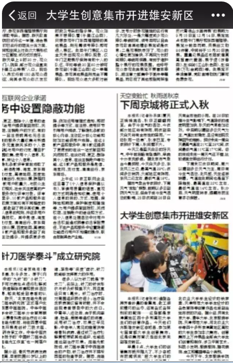 北京电视台记者采访北服校长助理、创新园总经理,他介绍说,时尚雄安盛典通过“政府主导、市场化运营”模式,将时尚基因引入容城,植入雄安,承接首都文化生活新功能、新模式、新维度,为新区服装产业导入设计创新力量,营造时尚创意氛围,推广区域文化特色,助力区域产业升级。