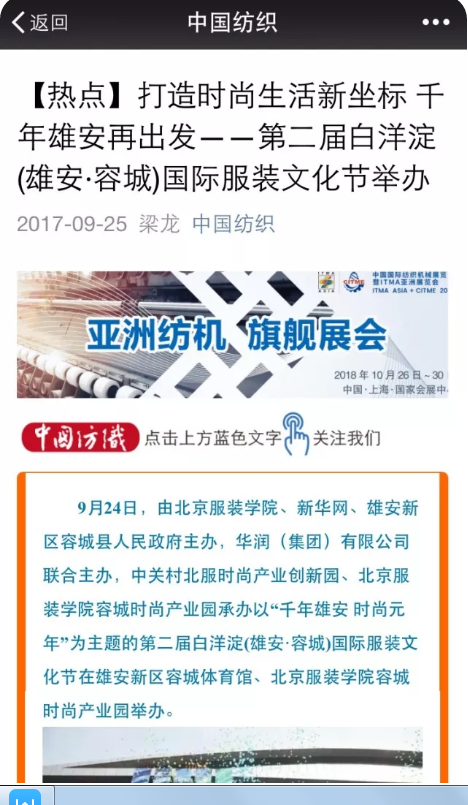 - 【置顶】北服携手雄安|中央电视台、北京电视台等媒体现场报道北服参与主办的白洋淀(雄安.容城)国际服装文化节